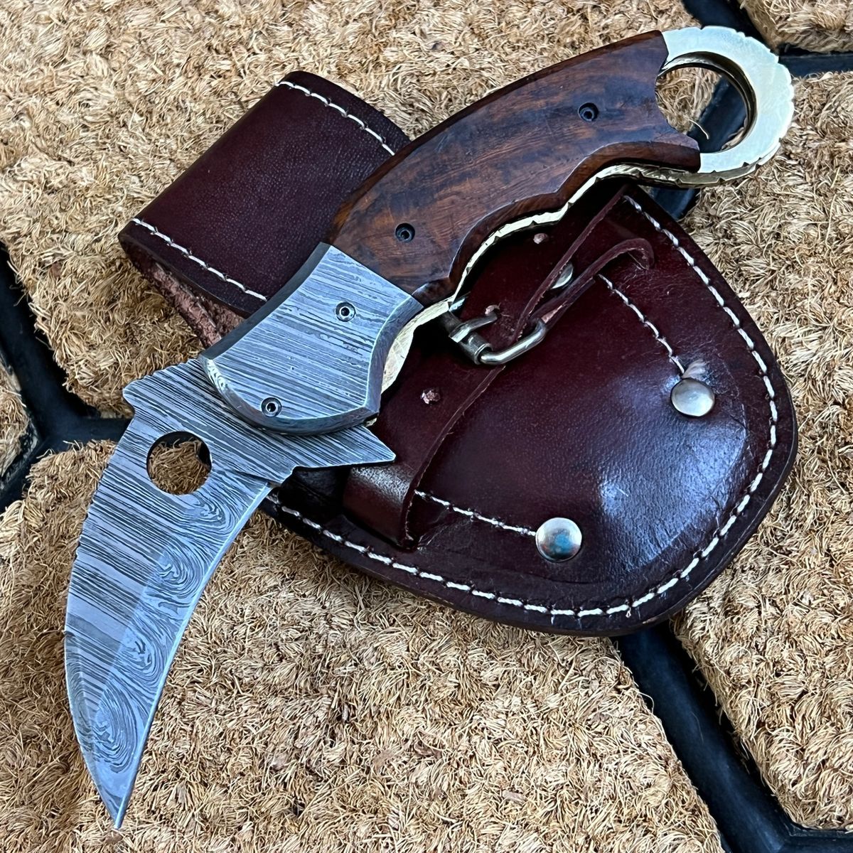 Ash H812 Damascus Steel Custom Handmade Pocket Folding Karambit Knife